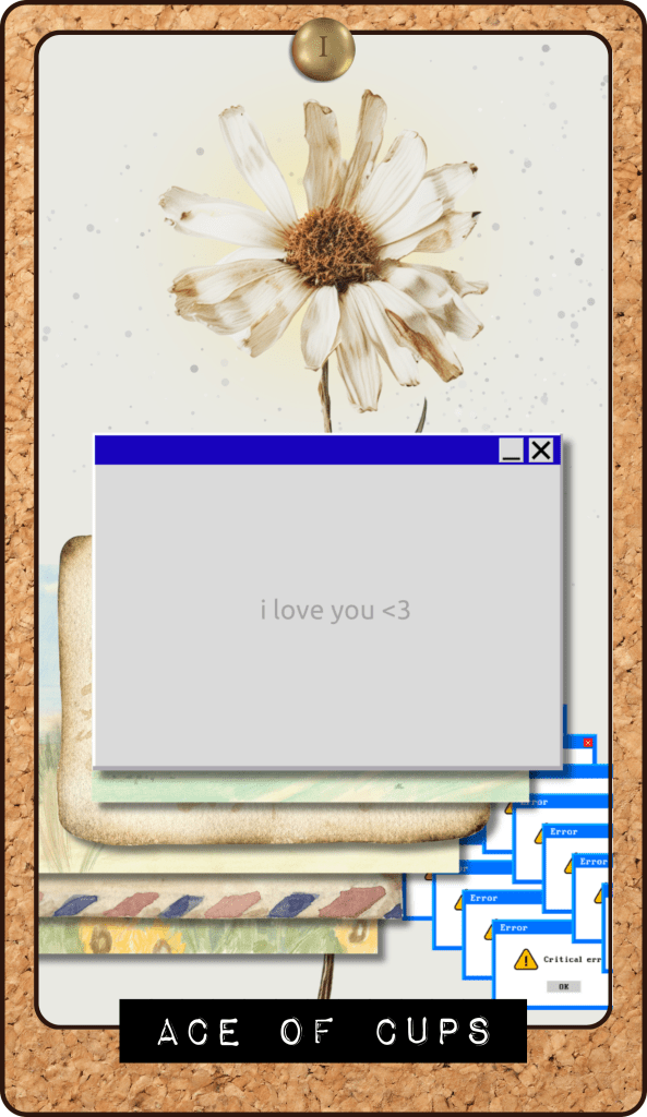 Swords have always been about intellect, truth, and sometimes painful clarity. In this deck, Wings take on that role—symbolizing sharp insight, freedom, and the weight of knowing too much. There’s something unsettling about wings; they promise flight but also the fear of falling. Think angelic motifs from Y2K pop culture, paper cutouts, or old-school Lisa Frank butterflies—bright, delicate, but with an edge.