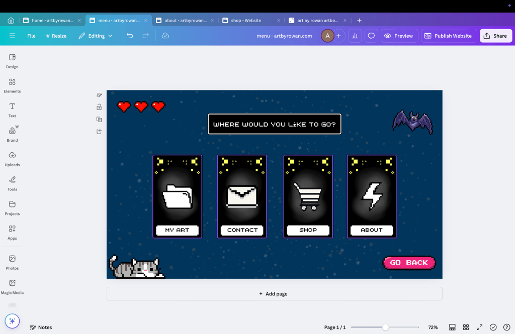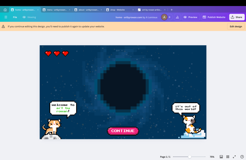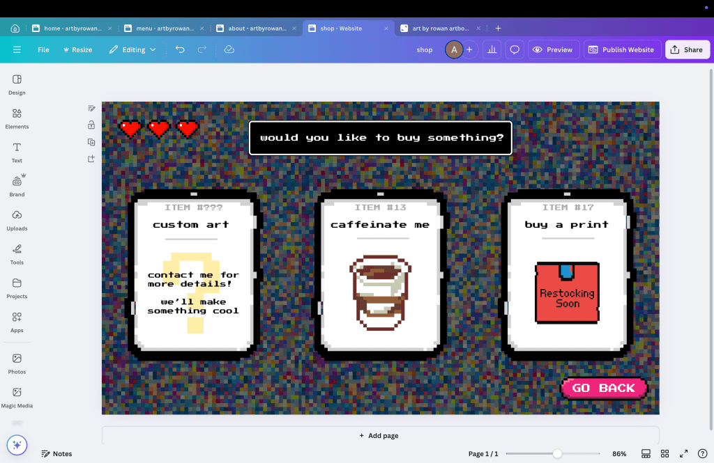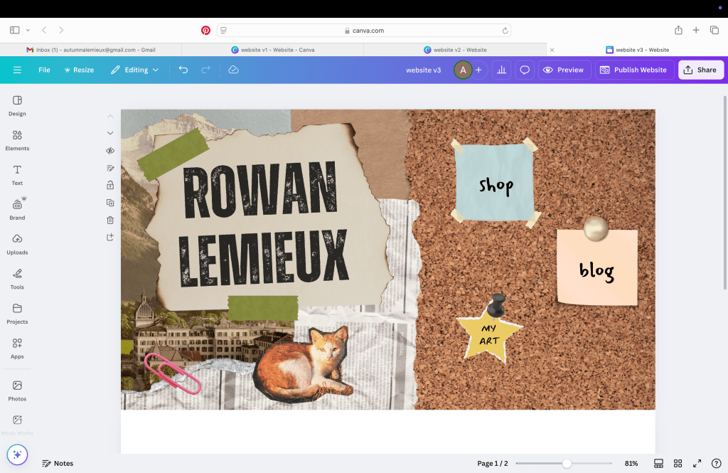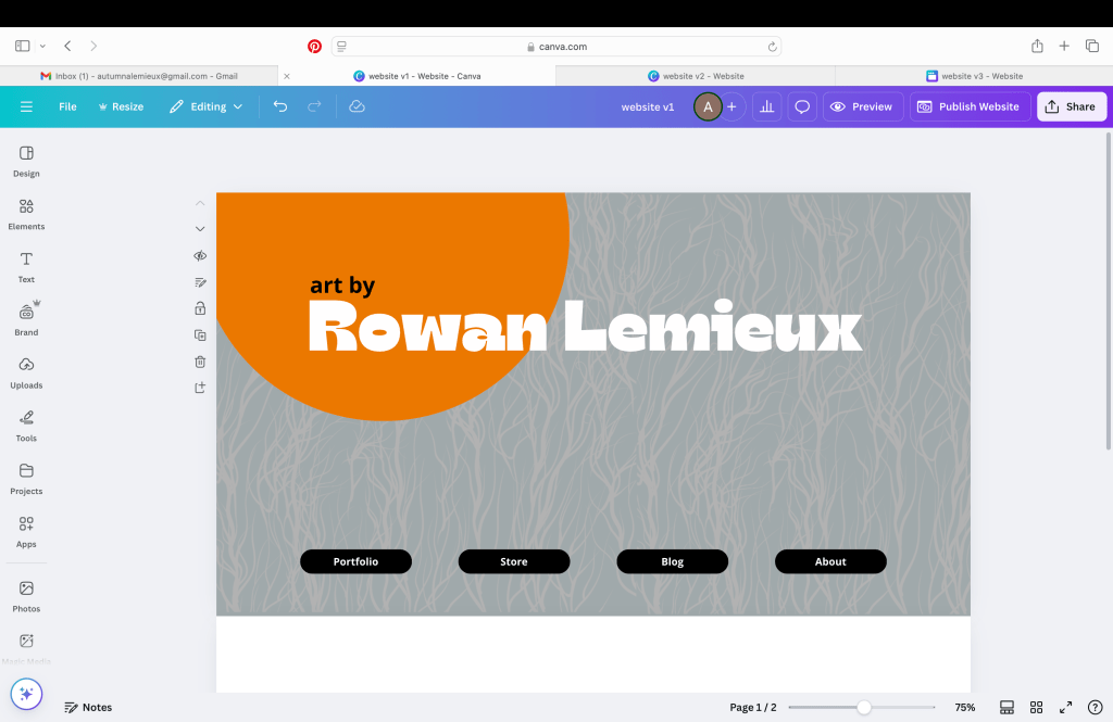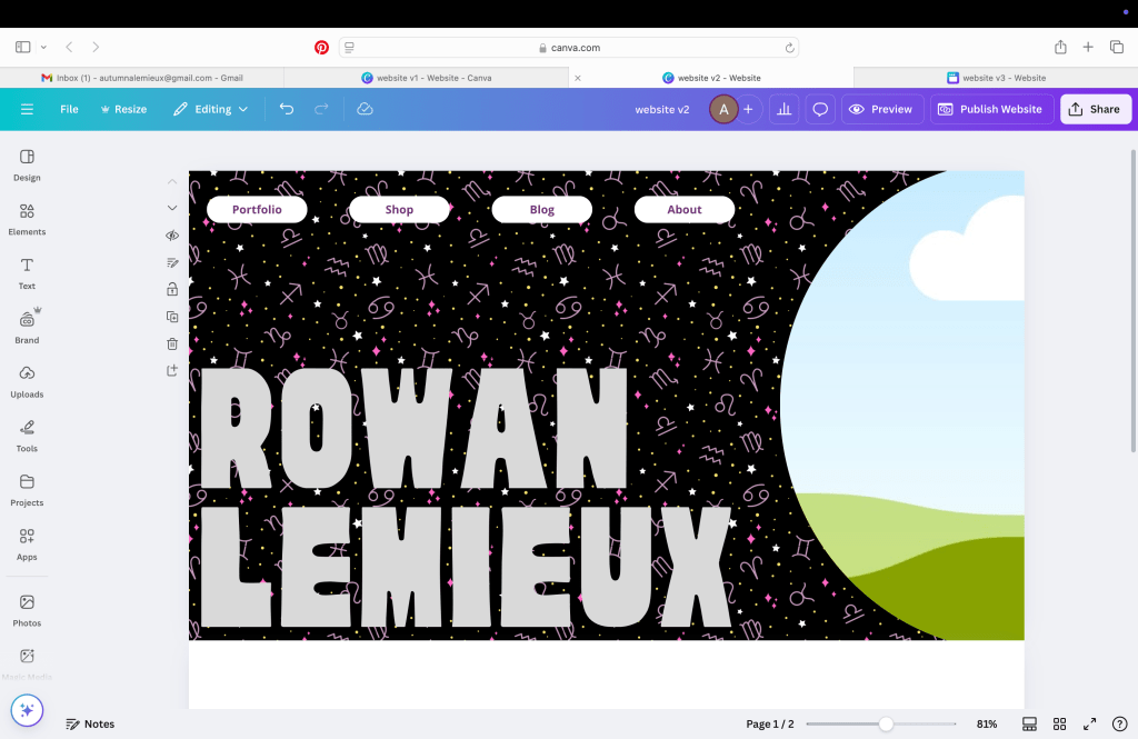 To give Rowan 100% creative control over his website and keep costs low, I purchased a website domain through Squarespace and created this website through Canva. Since Rowan is already on my Canva plan, this means his monthly costs are $0.