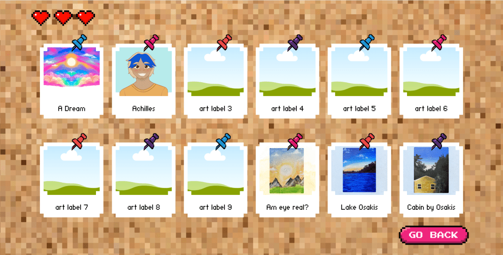 The My Art page features clickable tiles and arrows for a visual design reminiscent of the Nintendo DS.