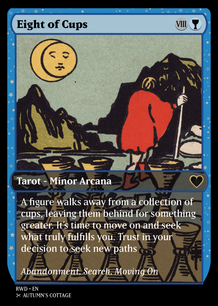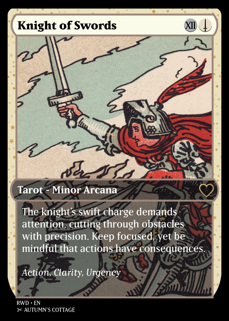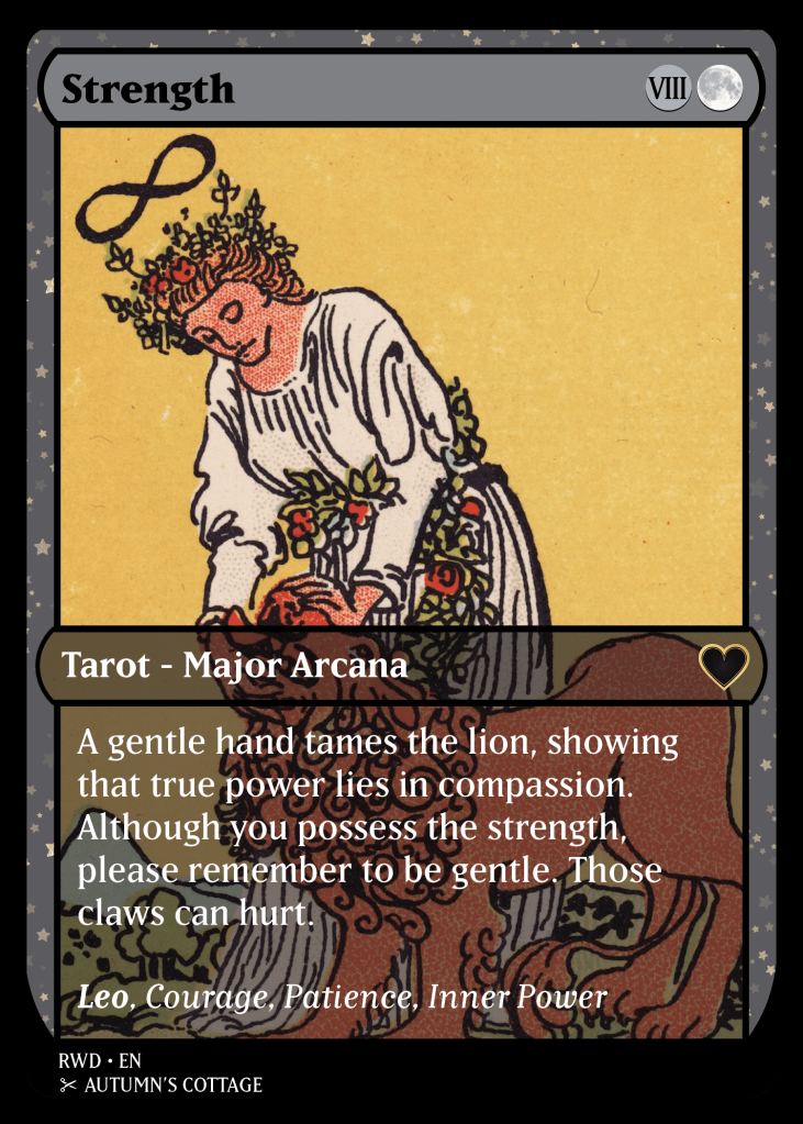 A restyled Rider-Waite deck for TCG fans. Designed to be beginner-friendly with brief interpretations and keywords printed on each card.